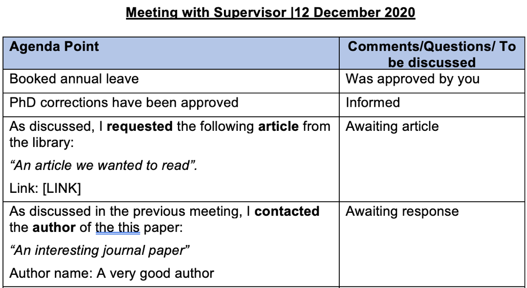 • Here’s an example of how you can structure your meeting agendas: